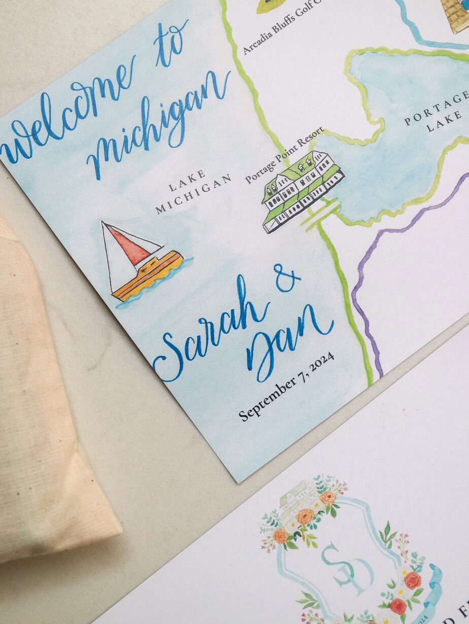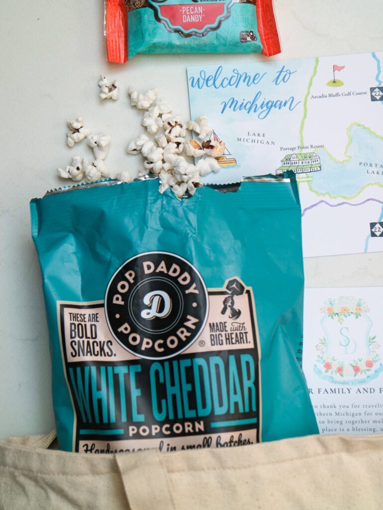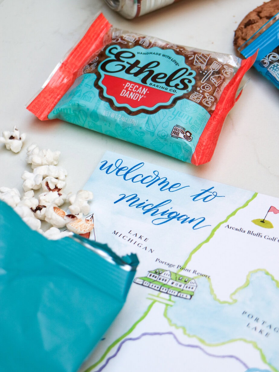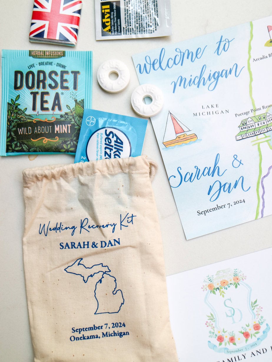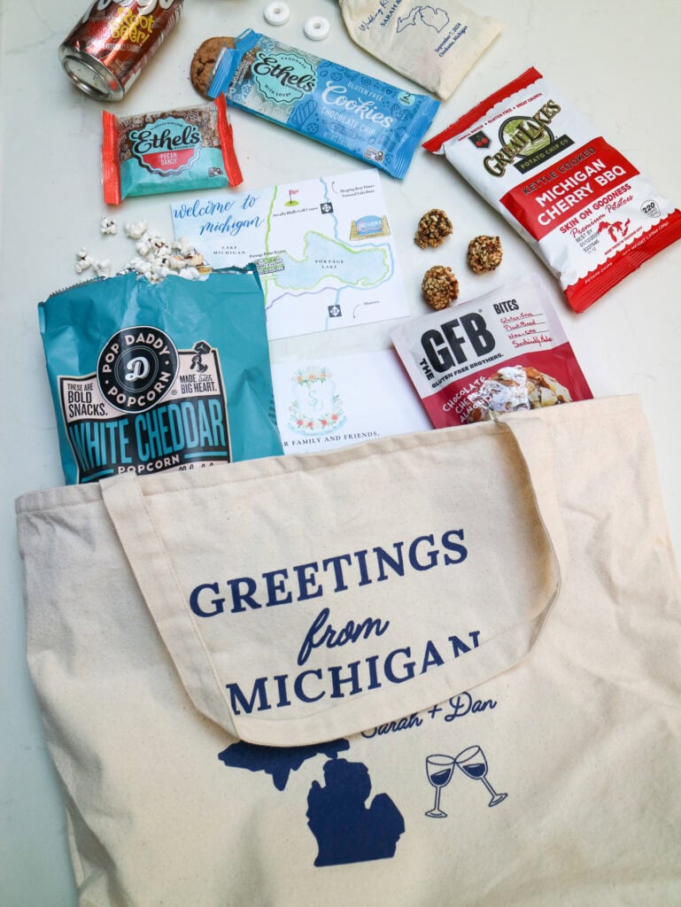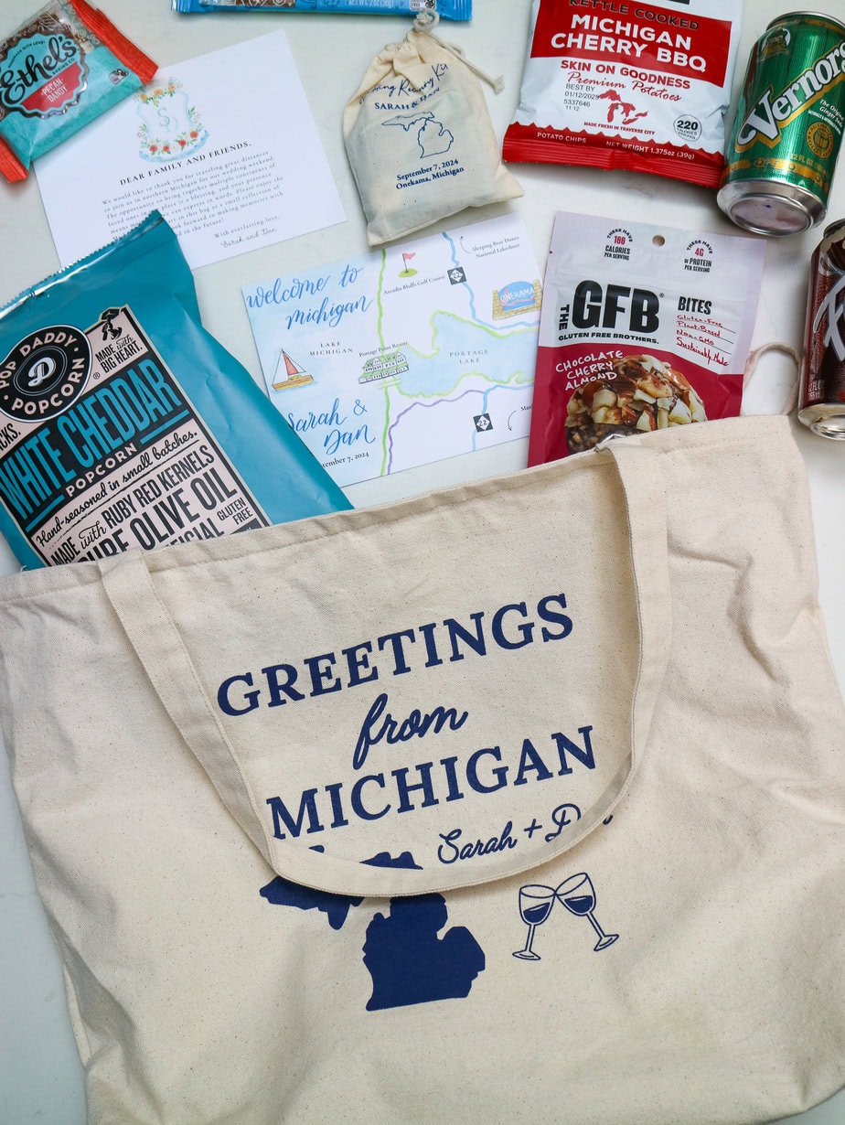 In my mind, the wedding welcome bags became a way of not only thanking our guests for attending our destination wedding, but also showcasing the beauty and entrepreneurship of Michigan and Michiganders. Michigan is a gorgeous, underrated state, and Dan and I took our roles as a two-person tourism board quite seriously!