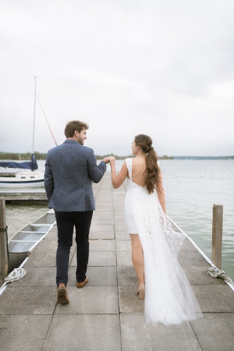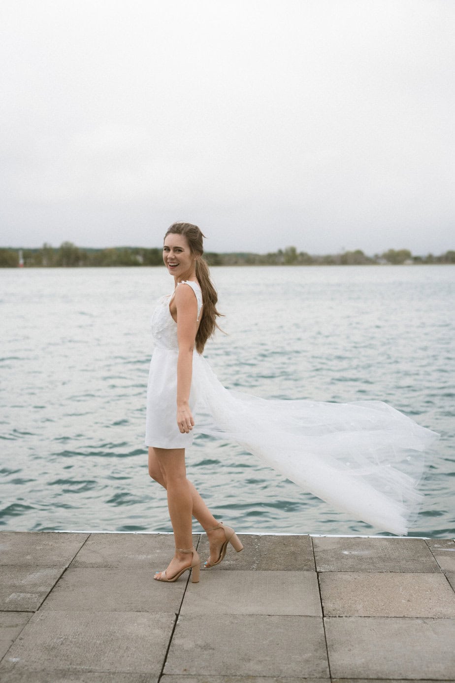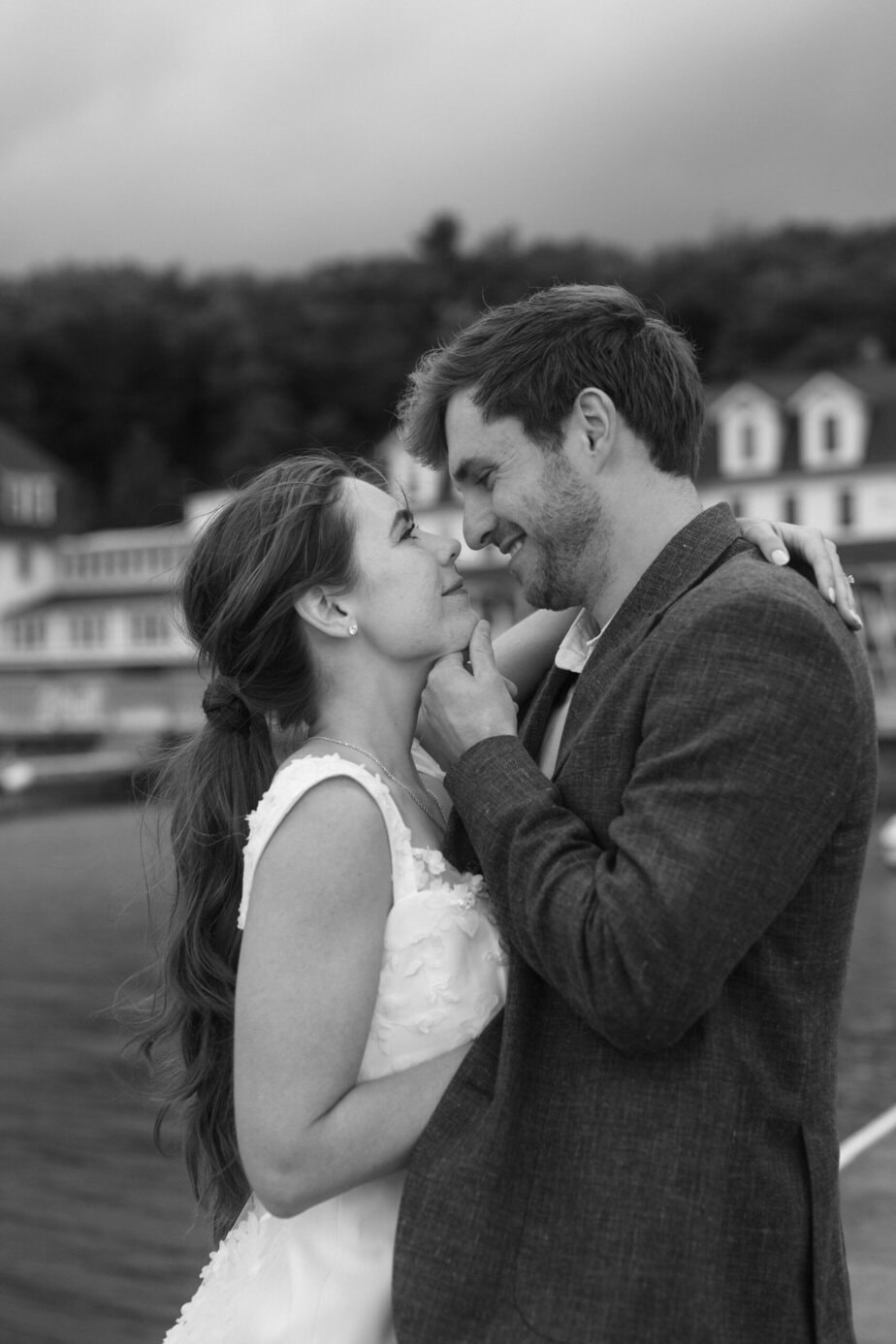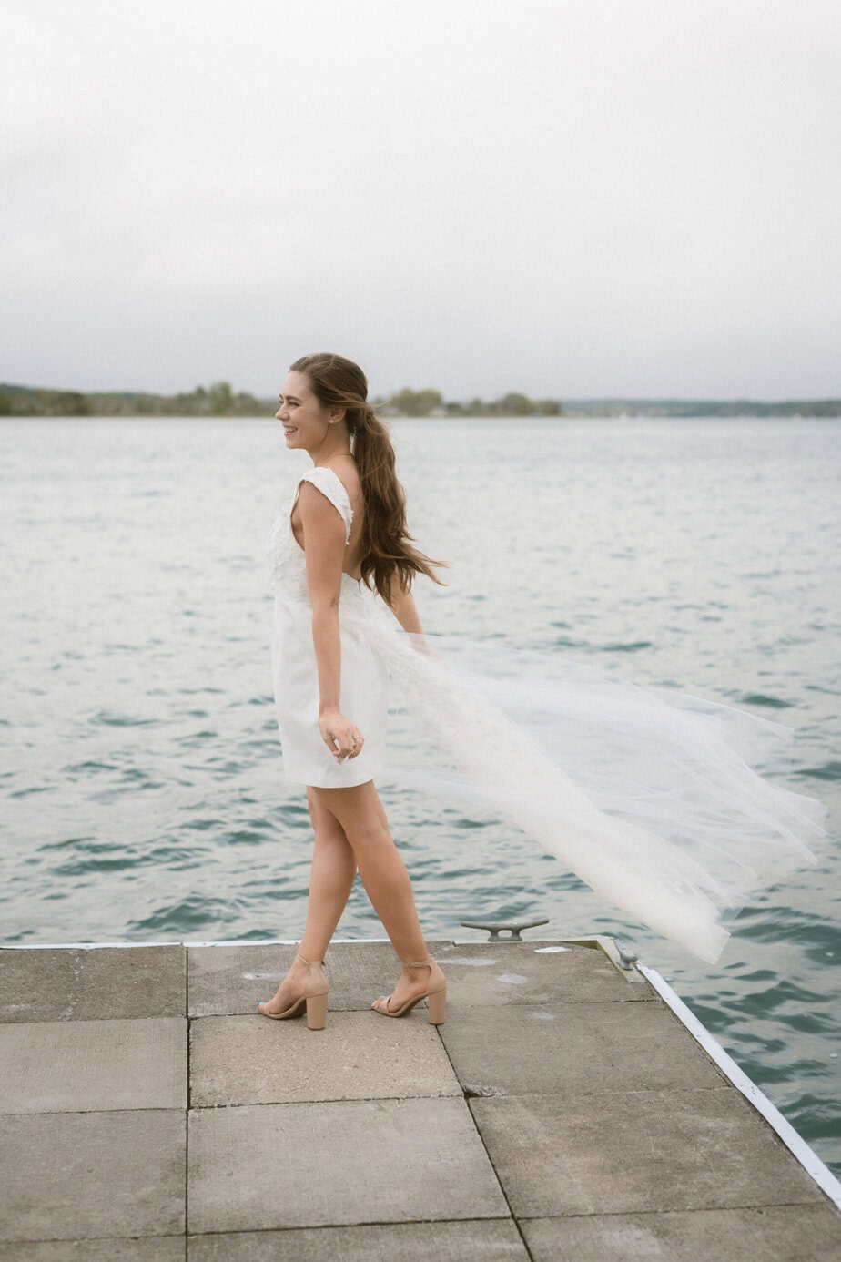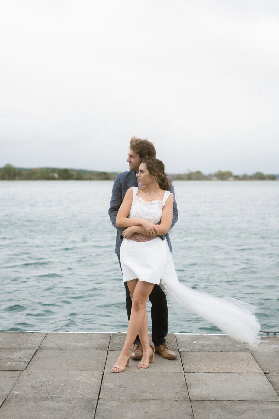 After our (rather cold, wet, and windy) wedding rehearsal that evening, Dan and I headed out to the docks on Portage Lake with Sarah, our wedding photographer, for some photos before the welcome dinner. A rainbow even showed up for us!