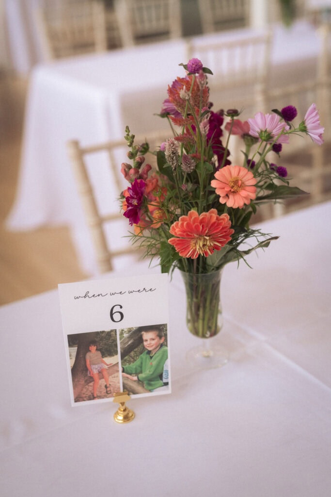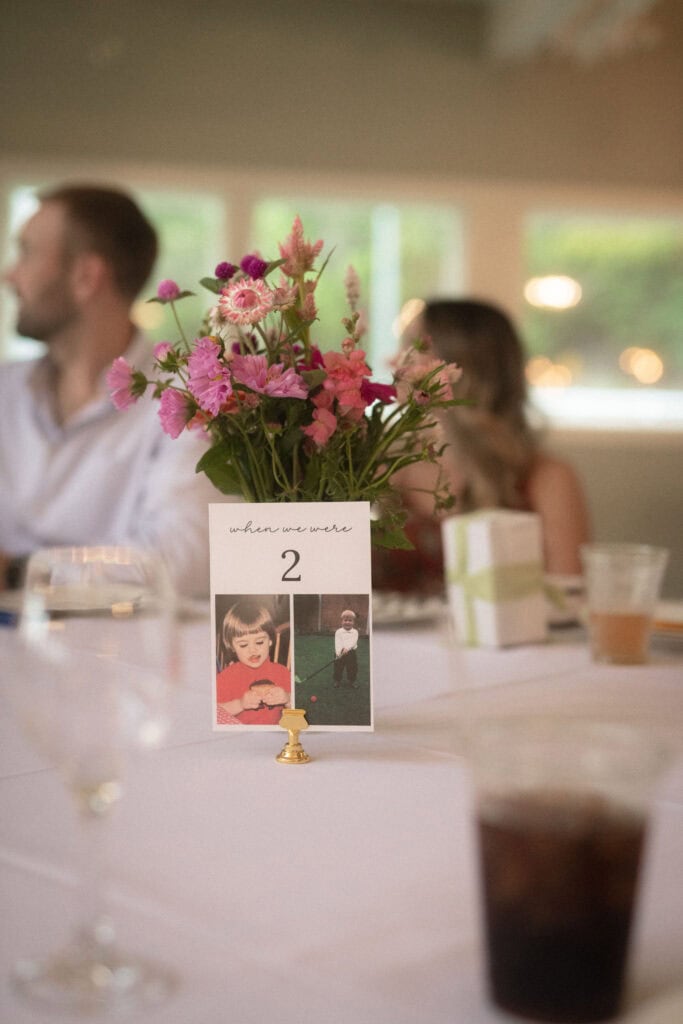 - No assigned seating, but I did make table numbers with our childhood photos which was a hoot
