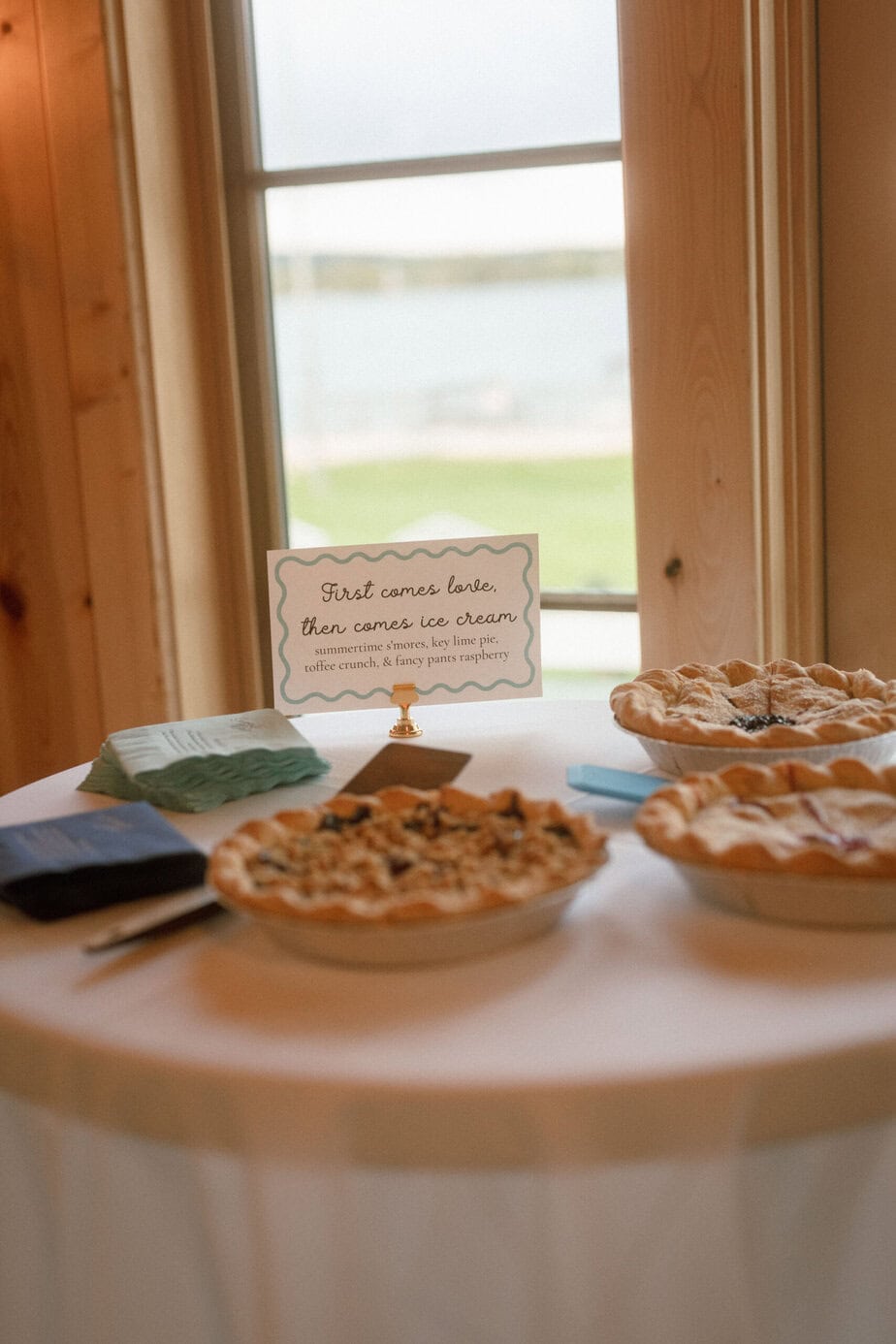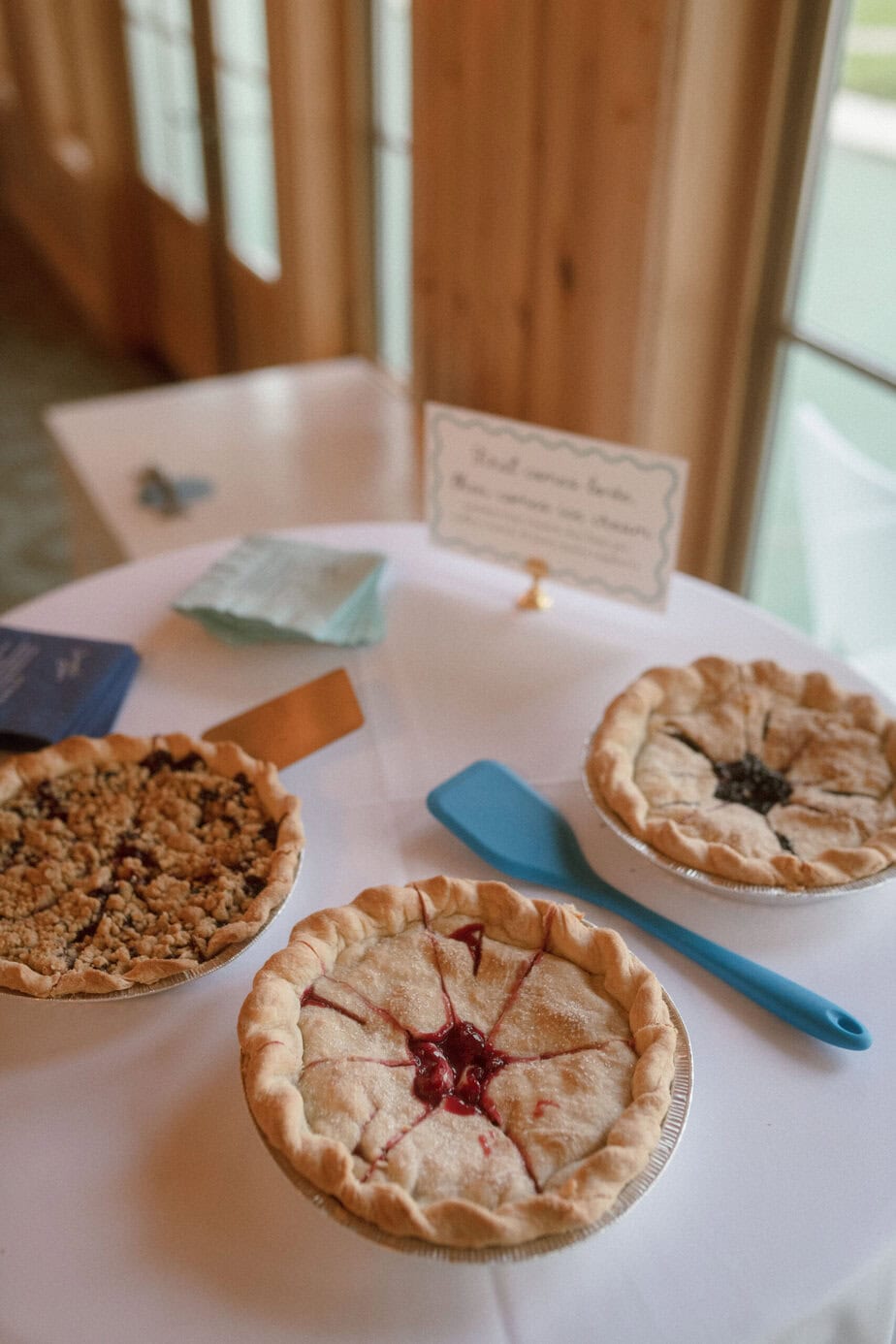 At the last minute, we also ordered some fruit pies from the nearby farm that provided our flowers. It turns out, fruit pie is really not a thing in England, so it was fun introducing this very American food to our Brits.